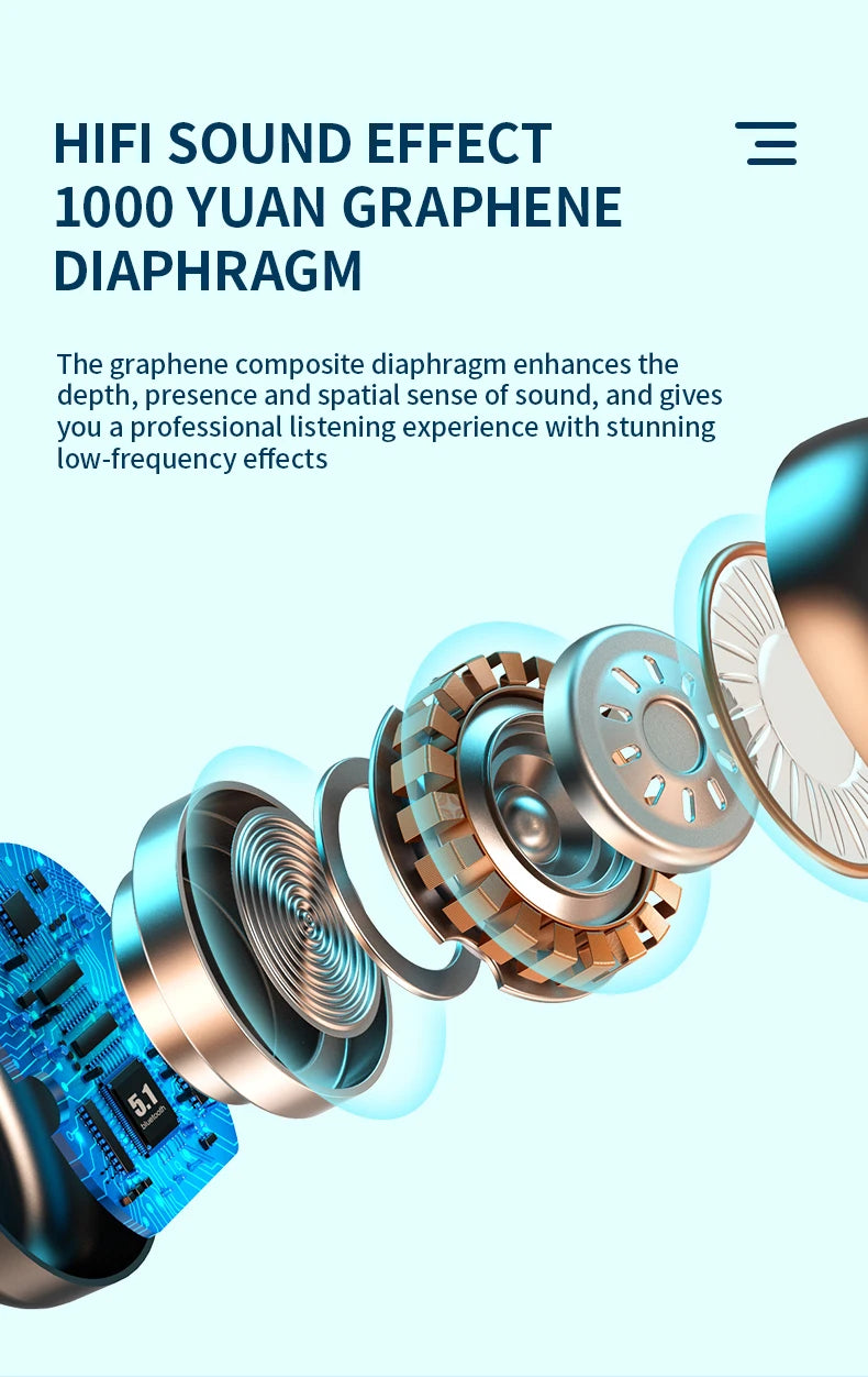Écouteurs sans fil de qualité supérieure avec un son HI-FI unique. Mais aussi des fréquences aiguës claires et nettes, des basses puissantes et des médiums équilibrés.